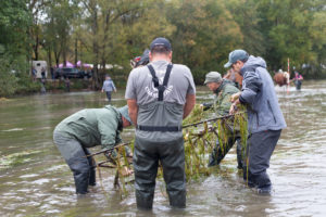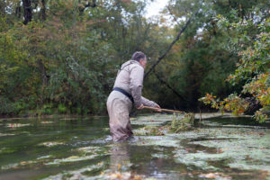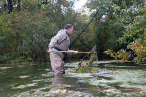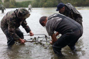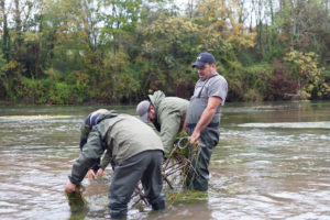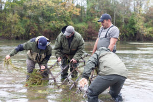 Depuis quelques années, l’association « La truite saumonée » a mis en place un projet innovant en partenariat avec « Le Trait charentais » pour gratter le fond des rivières, afin de restaurer les frayères (*).