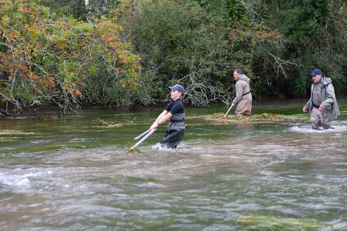 Depuis quelques années, l’association « La truite saumonée » a mis en place un projet innovant en partenariat avec « Le Trait charentais » pour gratter le fond des rivières, afin de restaurer les frayères (*).